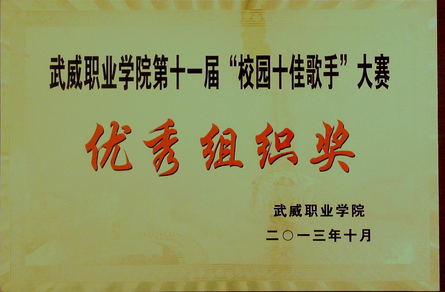 “校園十佳歌手”大賽優(yōu)秀組織獎(jiǎng)