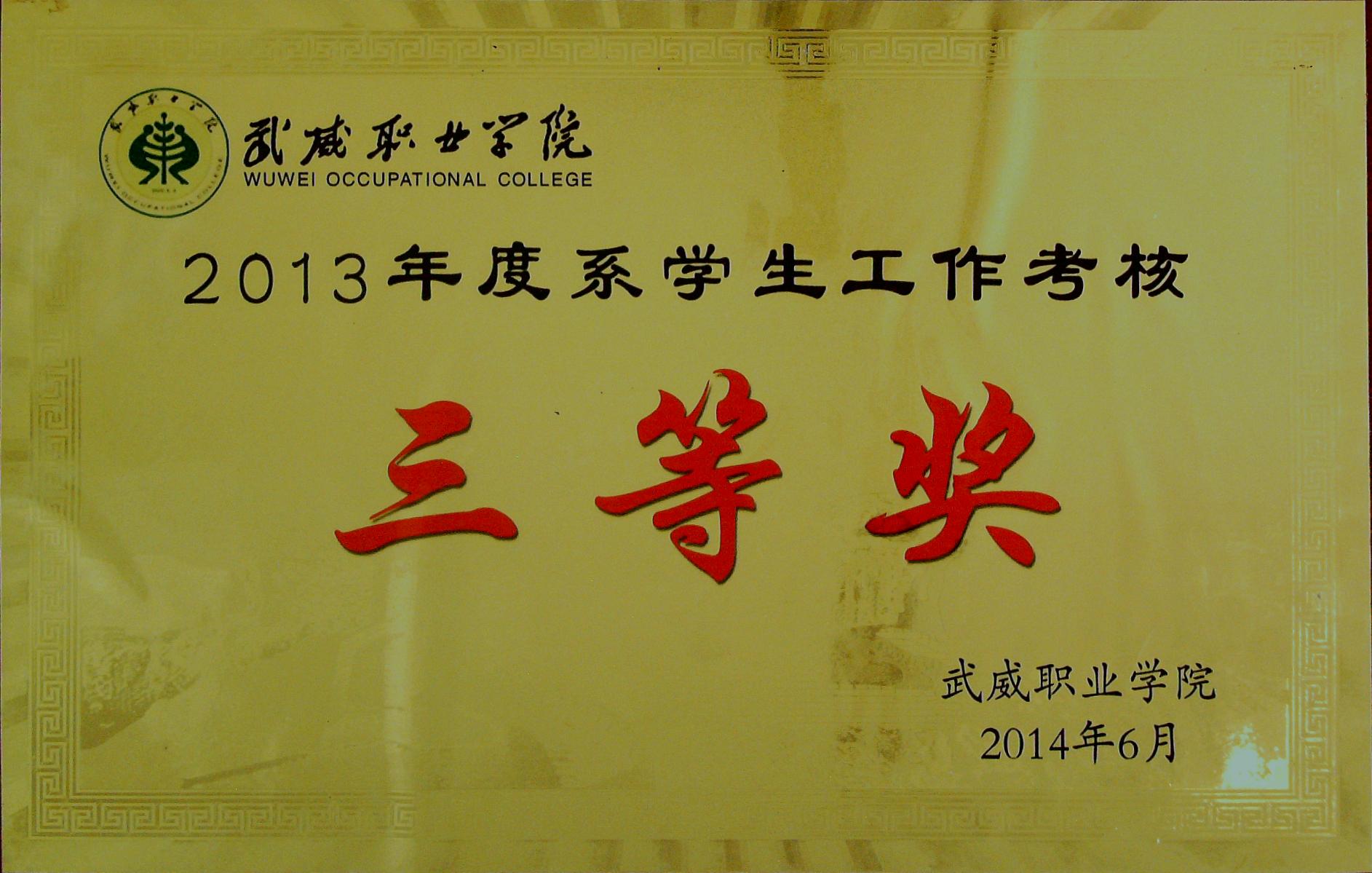 2013年度系學生工作考核三等獎