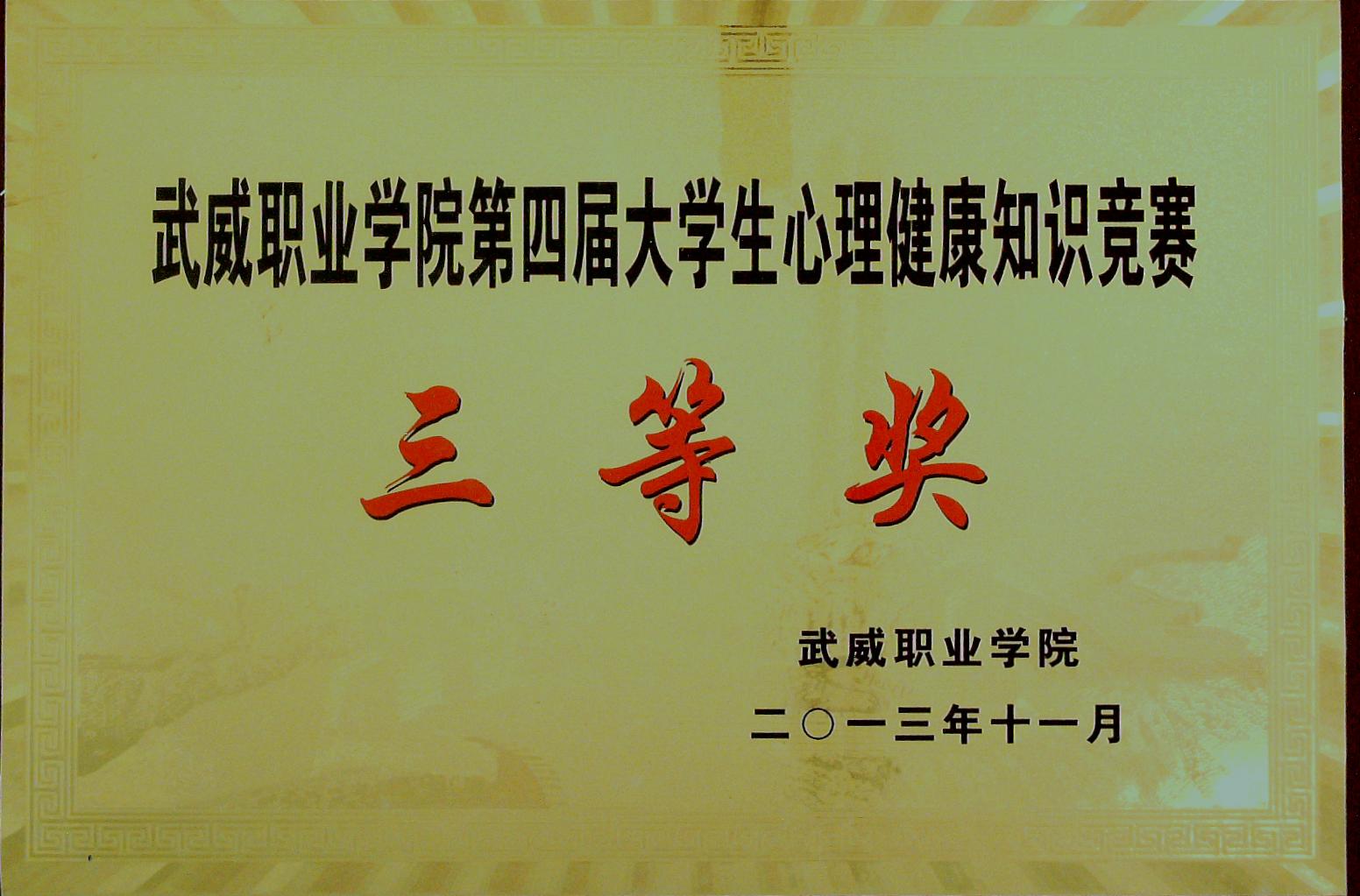第四屆大學生心理健康知識競賽三等獎