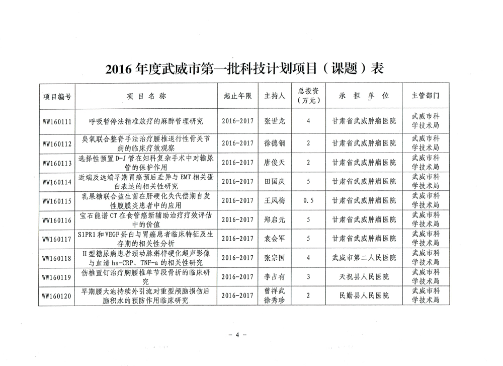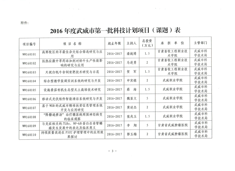 武威市科學技術(shù)局關(guān)于下達2016年度武威市第一批科技計劃項目的通知