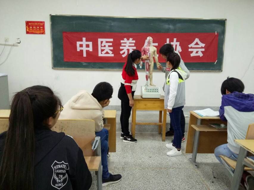 中醫(yī)養(yǎng)生協(xié)會在明遠樓開展認識人體經(jīng)絡(luò)活動