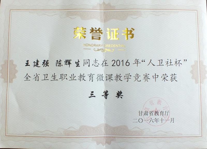 我院教師在2016年“人衛(wèi)社杯”全省衛(wèi)生職業(yè)教育微課教學(xué)競賽中獲獎