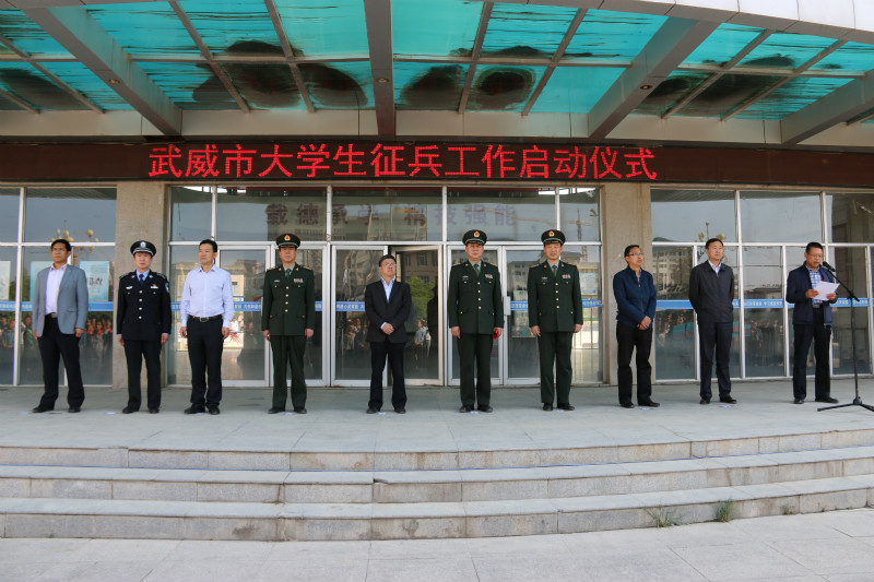 5月15日下午,武威市大學(xué)生征兵工作啟動(dòng)儀式在學(xué)院尚德樓北廣場(chǎng)隆重舉行。武威市政府副市長(zhǎng)胡細(xì)如和武威軍分區(qū)司令員萬(wàn)發(fā)中出席啟動(dòng)儀式并做了講話,武威軍分區(qū)政委周小平、參謀長(zhǎng)孫武奇,市委宣傳部副部長(zhǎng)陳萬(wàn)能,涼州區(qū)委常委、常務(wù)副區(qū)長(zhǎng)高加志,市教育局督學(xué)張應(yīng)偉、市民政局雙擁辦副主任楊光鈺、市公安局副調(diào)研員陳振亞出席啟動(dòng)儀式。武威日?qǐng)?bào)社、廣播電視臺(tái)的媒體朋友和我院1000多名師生代表參加啟動(dòng)儀式,學(xué)院副院長(zhǎng)王永緒主持啟動(dòng)儀式。