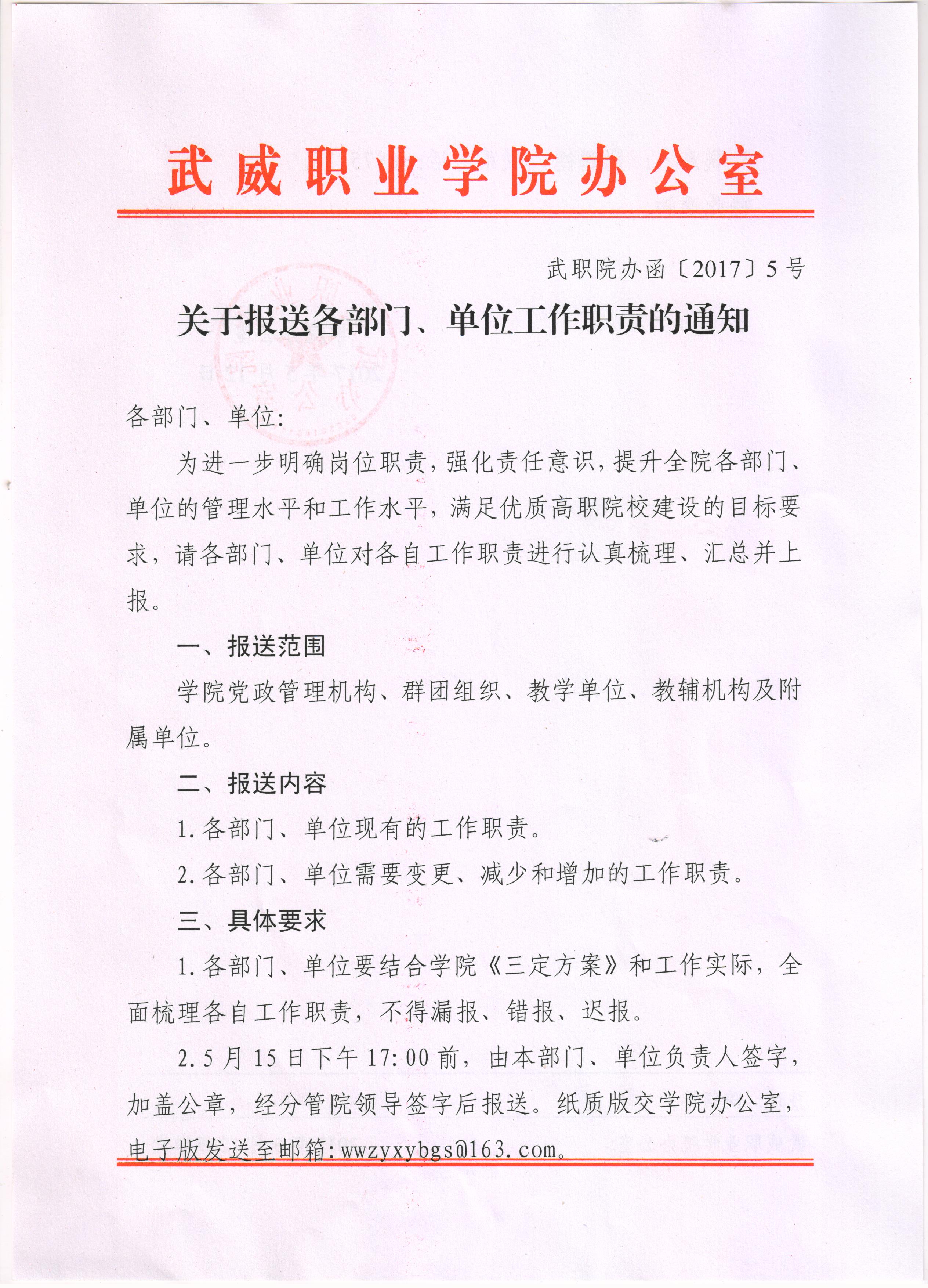 關(guān)于報送各部門、單位工作職責的通知