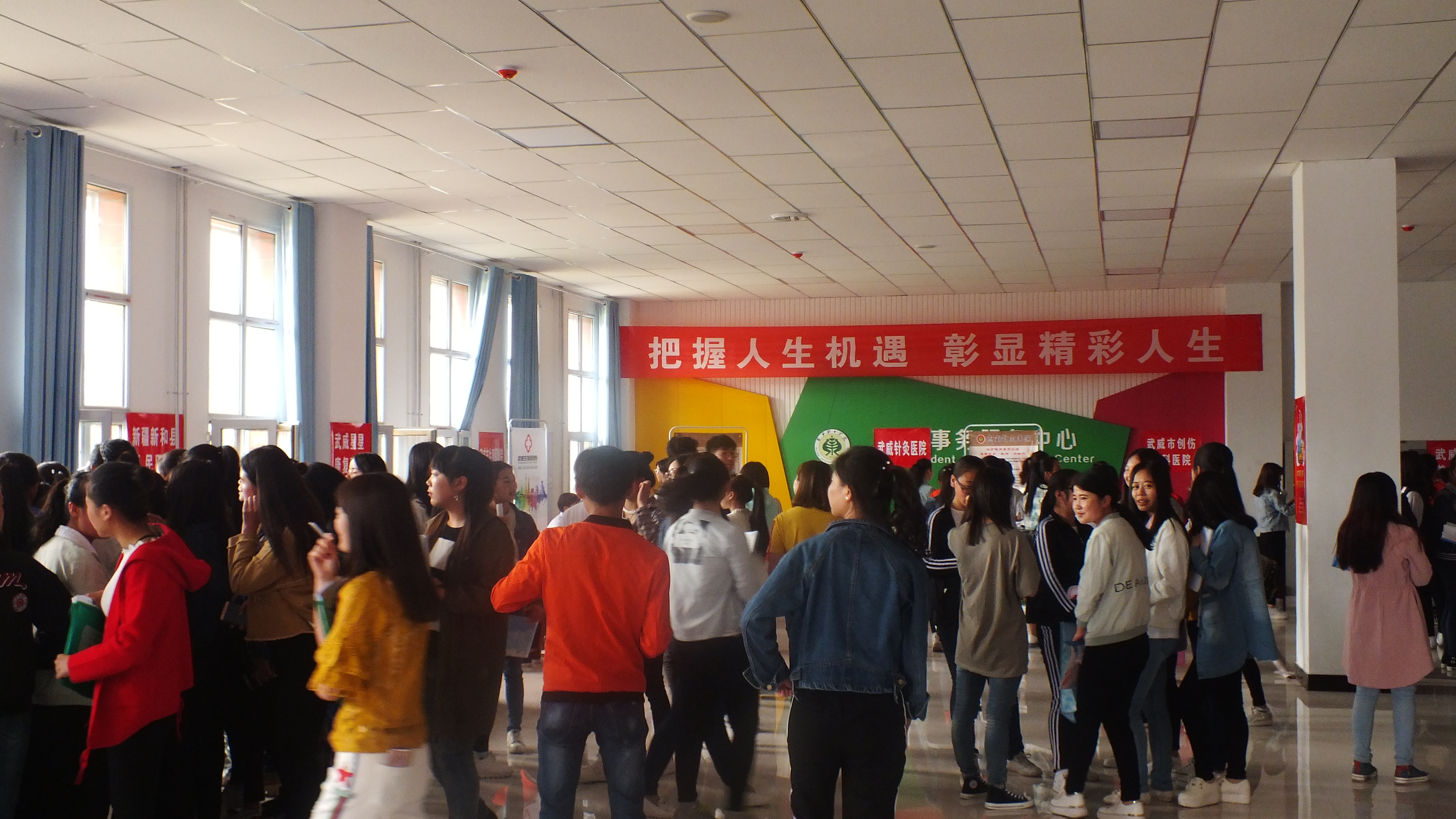 為促進(jìn)我院護(hù)理、助產(chǎn)專(zhuān)業(yè)發(fā)展,拓寬畢業(yè)生就業(yè)渠道,搭建畢業(yè)生與用人單位雙向交流平臺(tái),學(xué)院于5月15日在大學(xué)生活動(dòng)中心舉辦了2017屆護(hù)理、助產(chǎn)專(zhuān)業(yè)畢業(yè)生校園專(zhuān)場(chǎng)招聘會(huì),共有來(lái)自省內(nèi)外的12家醫(yī)療機(jī)構(gòu)及相關(guān)企業(yè)來(lái)我院選拔人才,護(hù)理系400余名2017屆畢業(yè)生參加了本次招聘會(huì)。在招聘會(huì)上,畢業(yè)生向各用人單位遞交了個(gè)人簡(jiǎn)歷,并咨詢(xún)了個(gè)人就業(yè)的相關(guān)問(wèn)題,100余人與就業(yè)單位達(dá)成初步就業(yè)意向,40余人與就業(yè)單位現(xiàn)場(chǎng)簽訂就業(yè)協(xié)議。