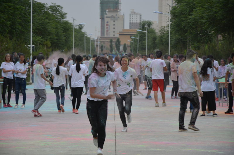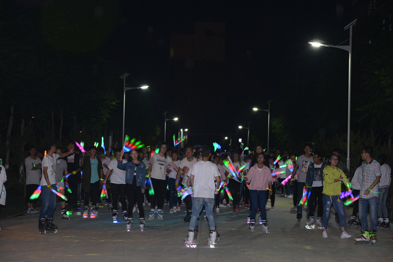 下午三點(diǎn),學(xué)院團(tuán)委宋文龍老師在啟動(dòng)儀式上做了熱情洋溢的致辭,團(tuán)學(xué)干部帶領(lǐng)參賽選手開啟了本次活動(dòng)的奔跑。本次活動(dòng)由“趣味沖關(guān)”“彩虹跑”“熒光夜跑”三個(gè)環(huán)節(jié)組成。“趣味沖關(guān)”由一系列小游戲組成,需要大家齊心協(xié)力、互相配合完成,同學(xué)們滿懷激情,在奔跑的同時(shí)體驗(yàn)著合作的趣味與快樂。掌聲、笑聲、加油聲此起彼伏,選手與觀眾互動(dòng)交流,整個(gè)過程充滿了愉悅的氣氛。下午五點(diǎn)開啟了整個(gè)活動(dòng)中最精彩的“彩虹跑”,同學(xué)們手捧玉米粉在慢跑中相互揮灑,多彩的玉米粉在他們身上留下了青春的印記。隨著夜幕降臨,精彩的“熒光夜跑”活動(dòng)隨之開始,同學(xué)們手帶熒光環(huán),舞動(dòng)熒光棒,在輪滑社成員的帶領(lǐng)下繞著校園跑動(dòng)。熒光點(diǎn)綴著夜色,歡快的音樂、青春的聲音充斥著整個(gè)校園?;顒?dòng)結(jié)束后,在學(xué)院東門小廣場(chǎng)舉行了自由晚會(huì),同學(xué)們圍成一圈,在主持人的帶動(dòng)下做互動(dòng)小游戲、自由演唱,一陣陣歡聲笑語回蕩在整個(gè)校園。