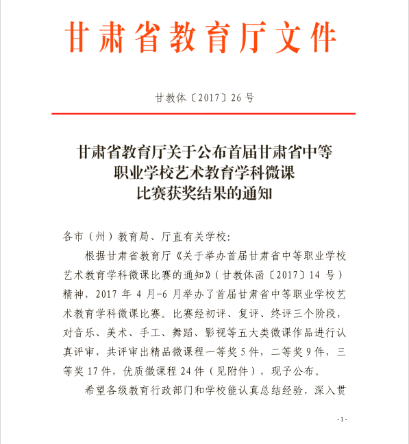 人文藝術(shù)教育系教師在首屆甘肅省中等職業(yè)學(xué)校藝術(shù)教育學(xué)科微課比賽中喜獲佳績