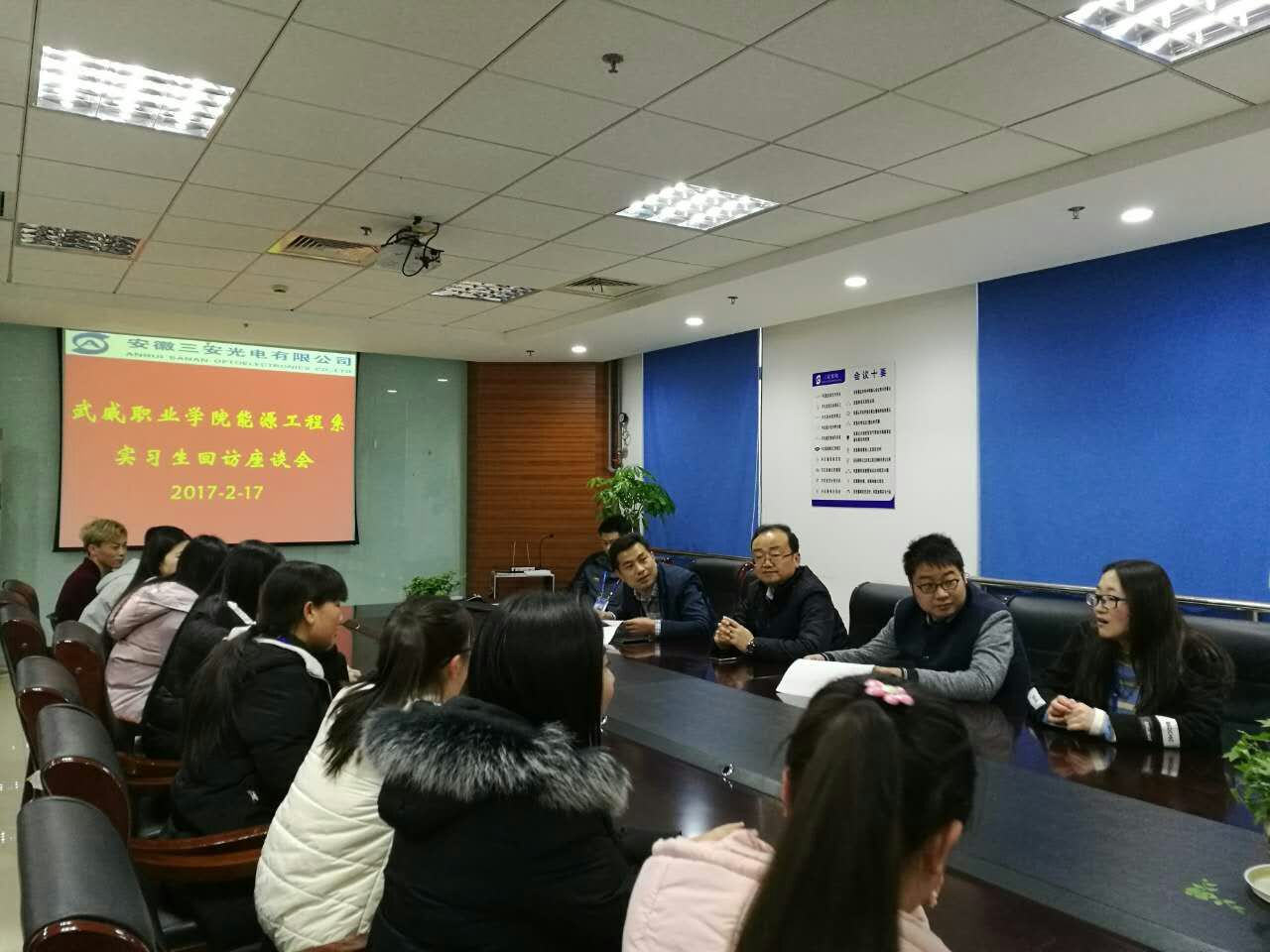 為全面掌握學(xué)生頂崗實(shí)習(xí)情況,解決學(xué)生實(shí)習(xí)就業(yè)中存在的問(wèn)題,進(jìn)一步做好學(xué)生頂崗實(shí)習(xí)工作。2月14日至18日,我系黨總支書記黃文源帶隊(duì)前往福建泉州陽(yáng)光中科能源股份有限公司和安徽蕪湖三安光電科技有限公司對(duì)我系2014級(jí)頂崗實(shí)習(xí)學(xué)生進(jìn)行了回訪。