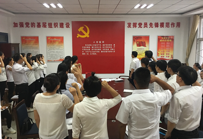 大會最后,全體黨支部成員面對黨旗,再一次舉起了右手,重溫入黨誓詞,進行了莊重的宣誓,表達了同志們“不忘初心,繼續(xù)前行”的理想信念。