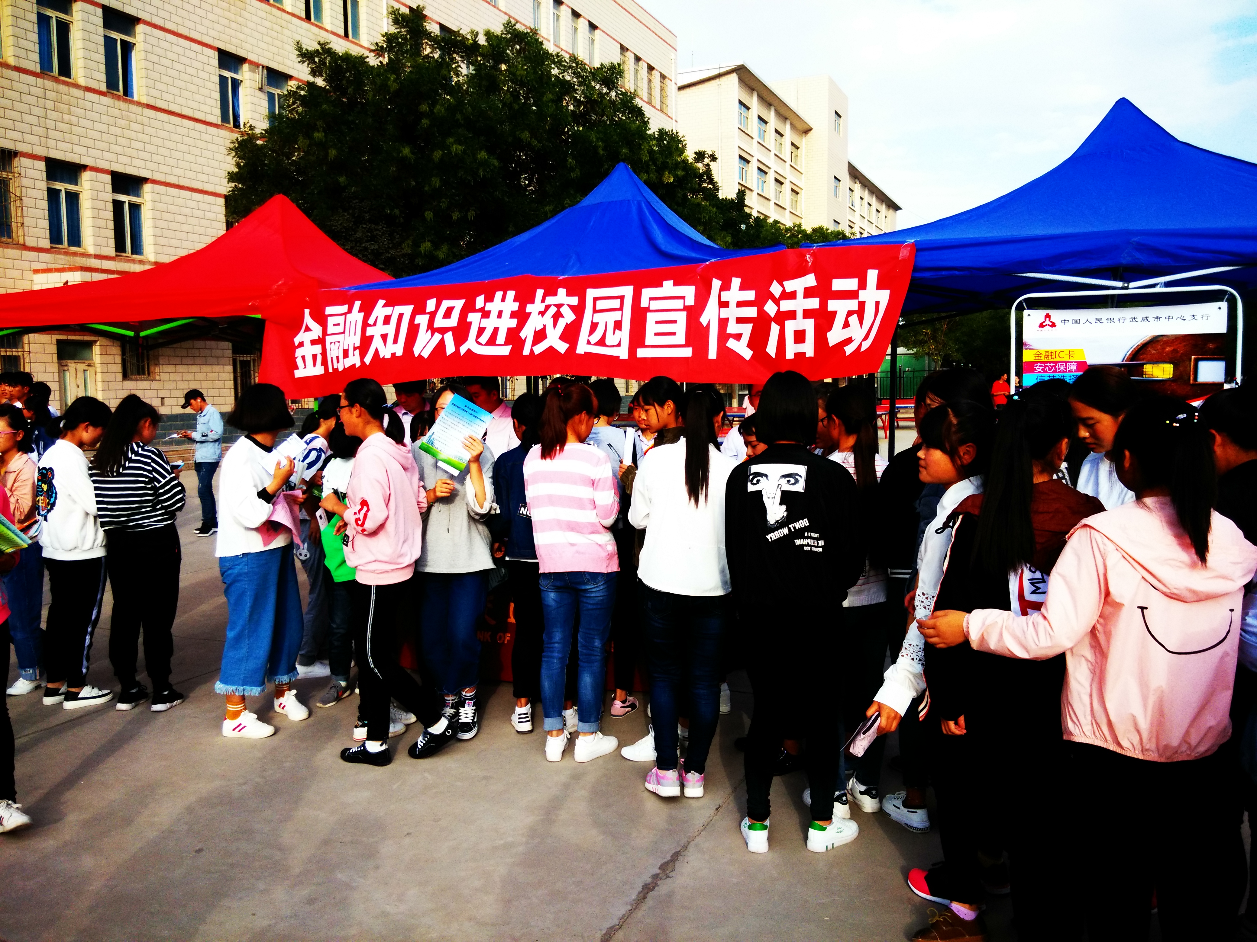 為幫助和引導(dǎo)大學(xué)生群體牢固樹立金融安全意識,9月21日下午,學(xué)生工作處邀請中國人民銀行武威分行、武威農(nóng)商銀行、交通銀行武威分行在學(xué)院尚德樓南操場開展了“送金融知識進(jìn)校園”宣傳活動,全院學(xué)生積極響應(yīng)號召,有1000余人參加了此次活動。