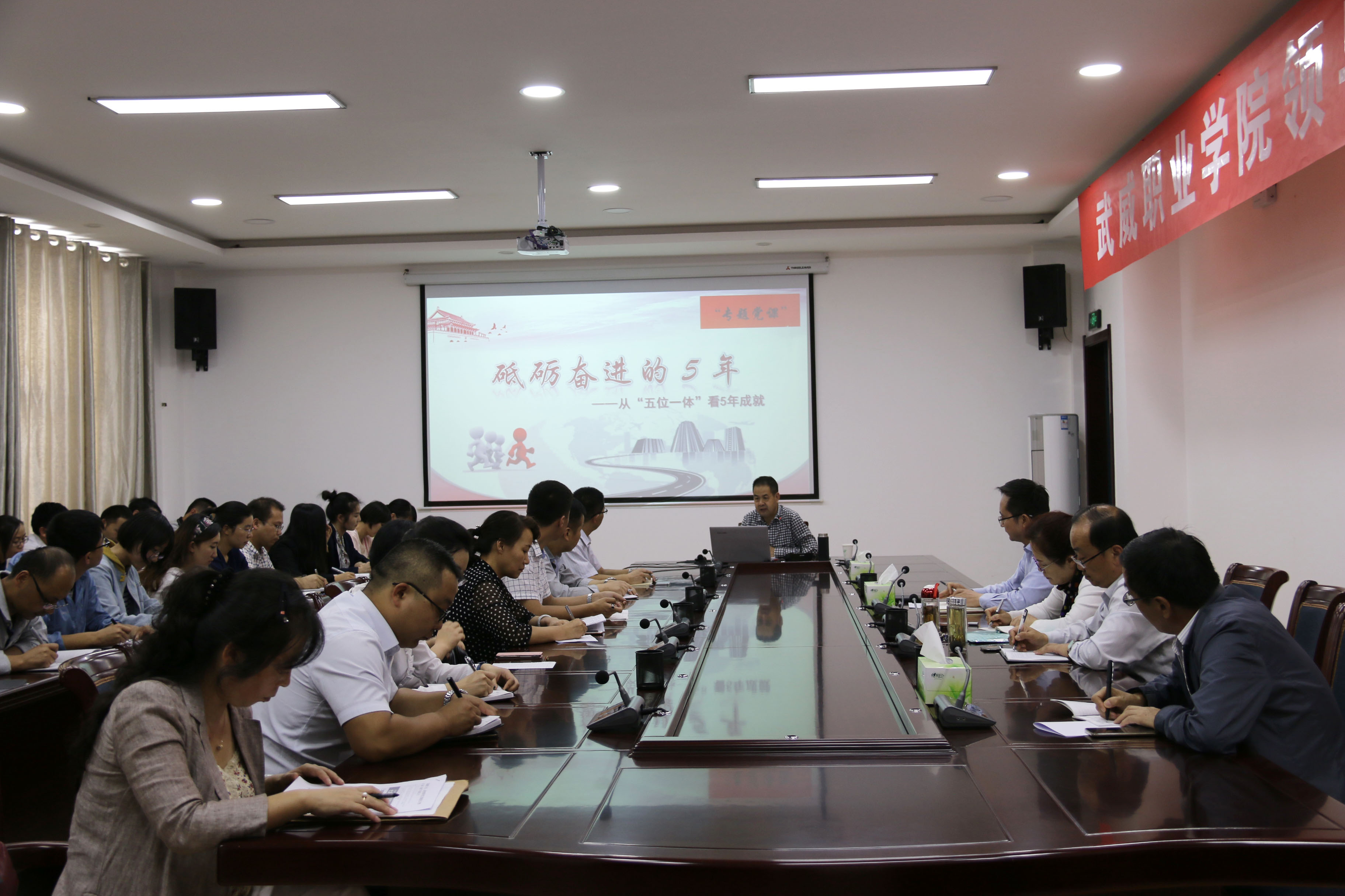 翟存祥作題為《砥礪奮進(jìn)的5年—從“五位一體”看五年成就》黨課報(bào)告。他從經(jīng)濟(jì)發(fā)展、民主政治、文化建設(shè)、改善民生及生態(tài)文明五個(gè)方面系統(tǒng)講述了黨的十八大以來,以習(xí)近平同志為核心的黨中央,通過實(shí)施“四個(gè)全面”戰(zhàn)略布局、“五位一體”總體布局與五大發(fā)展理念等一系列新思路、新戰(zhàn)略、新舉措,使黨和國(guó)家事業(yè)取得的歷史性成就。