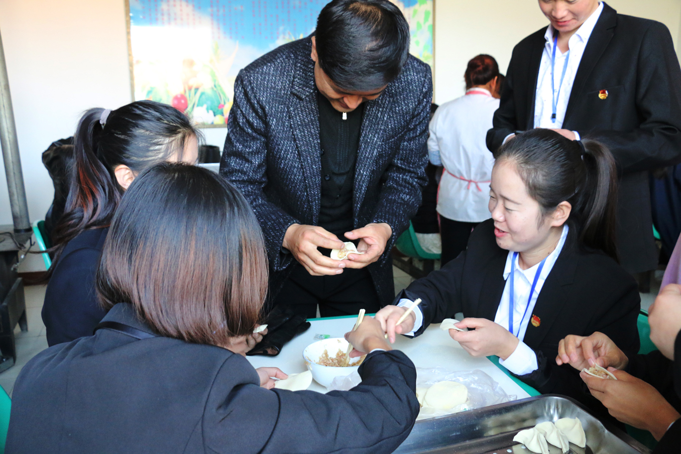 上午八點半,醫(yī)學(xué)技術(shù)學(xué)院各位黨員、入黨積極分子、團(tuán)學(xué)干部、師生代表在廚房為老人包餃子,并整理被褥;康復(fù)治療專業(yè)教師黨員高萬飛為老人講解“如何健康養(yǎng)生”;系團(tuán)總支為老人們送上毛巾、牙膏、香皂等日常生活用品;愛牙協(xié)會的志愿者為老人,進(jìn)行牙齒檢查,講解如何愛護(hù)牙齒;中醫(yī)養(yǎng)生協(xié)會的志愿者為老人們測血壓,演示常用的按摩方法。中午時分,老人們吃著熱氣騰騰的餃子,看著全系師生代表為老人們準(zhǔn)備的精彩節(jié)目,臉上洋溢著幸福的笑容。