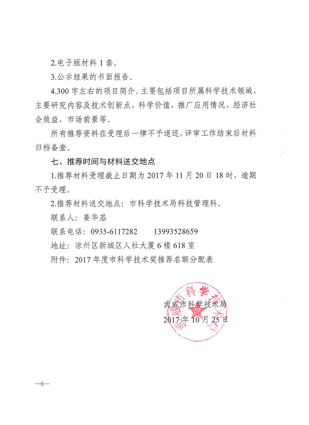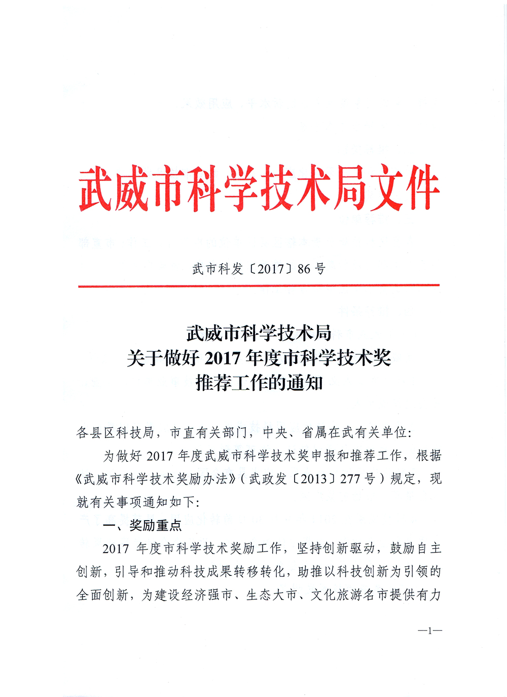關于做好2017年度武威市科學技術獎推薦工作的通知